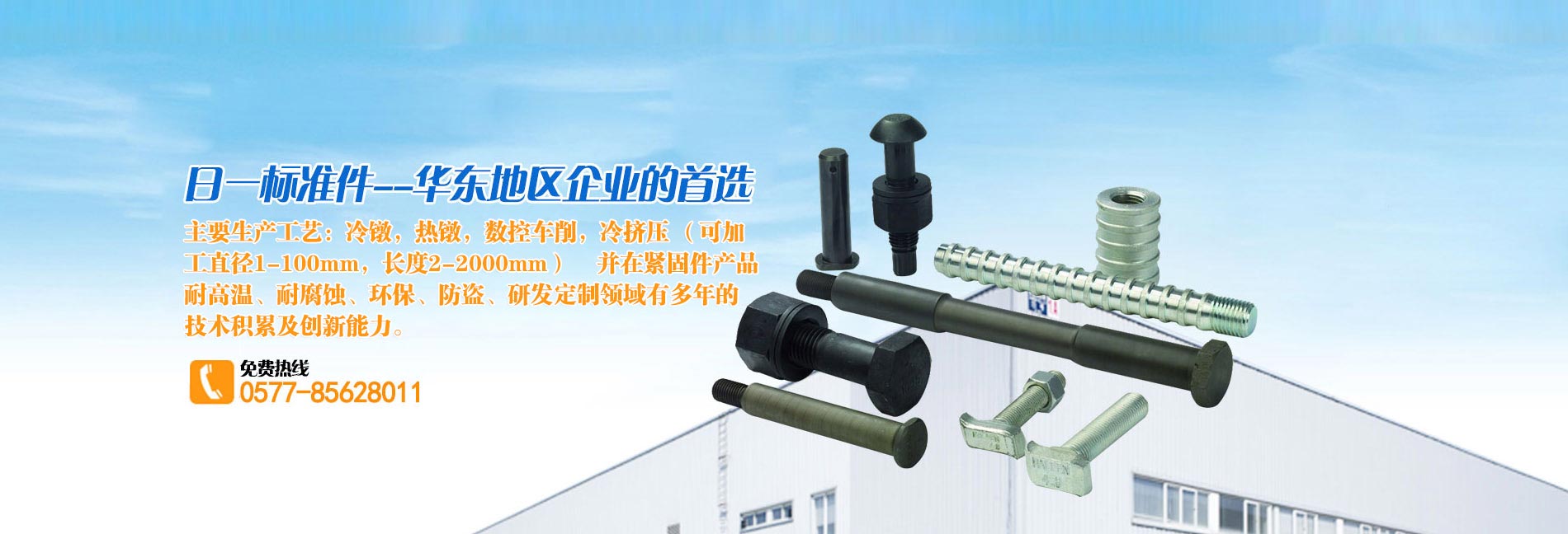温州日一标准件有限公司 坐落于浙南产业集聚区—温州滨海经济技术开发区。是一家专注于定制新型紧固件,研发能力较强的非标紧固件产品生产企业,公司于2015年注册了“日一/RIYI“牌商标并已经通过了ISO9001:2015质量管理体系认证。 我们配备了专业的骨干研发团队,引入了先进的多工位冷镦设备,重视产品的研发创新。完善的生产工艺,使生产的紧固件产品极具广泛性。齐全的配套产品已应用于国内船舶、铁路、...